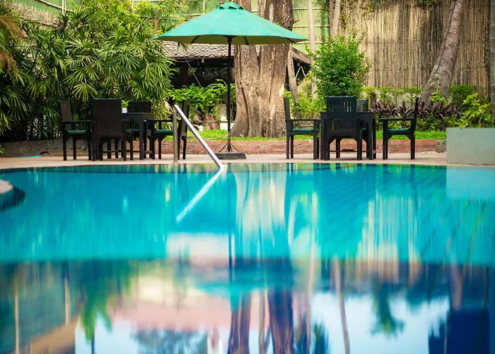 Cet hotel 4 étoiles se situe dans le quartier "Vithei Charles de Gaulle" à Siem Reap, à une courte distance de Prasat Chrung. Angkor Trails Residence est également situé à 5 minutes à pied d'Hayah art center et à 14 minutes à pied d'Angkor Shopping Center. À 2 km de la résidence, vous trouverez également les Artisans d'Angkor. La gare routière de Giant Ibis est à non loin de l'hotel.